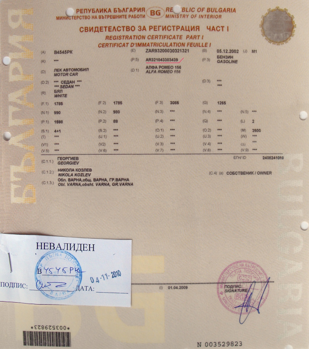 V5c Sertifikat Registracionen Talon Na Kolite V Angliya