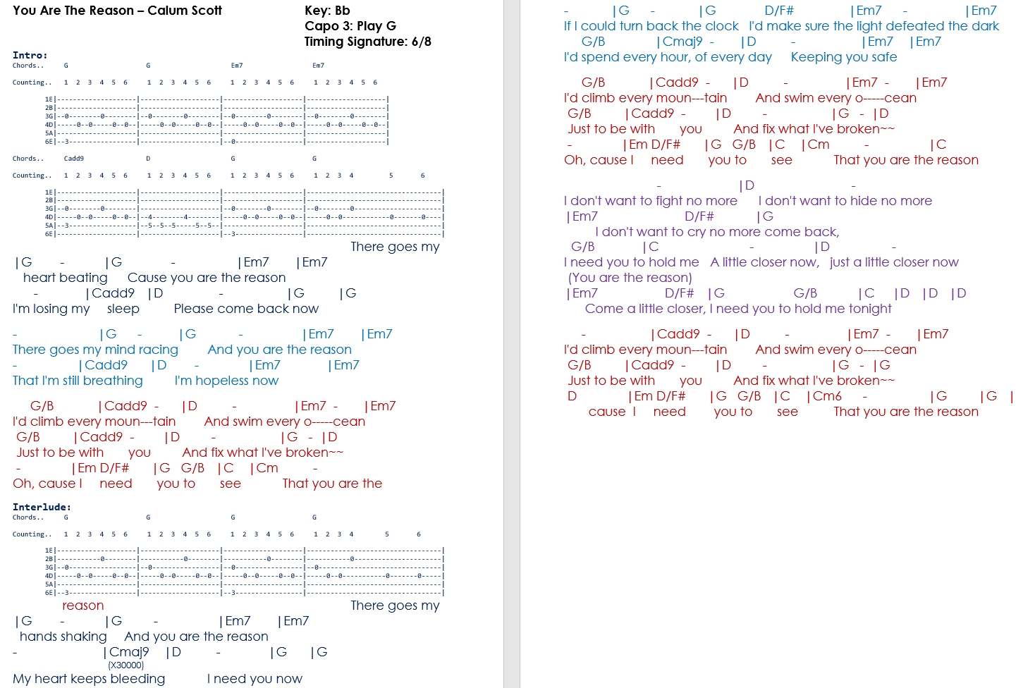 You Are The Reason Calum Scott Guitar Chords Calum Scott Songs
